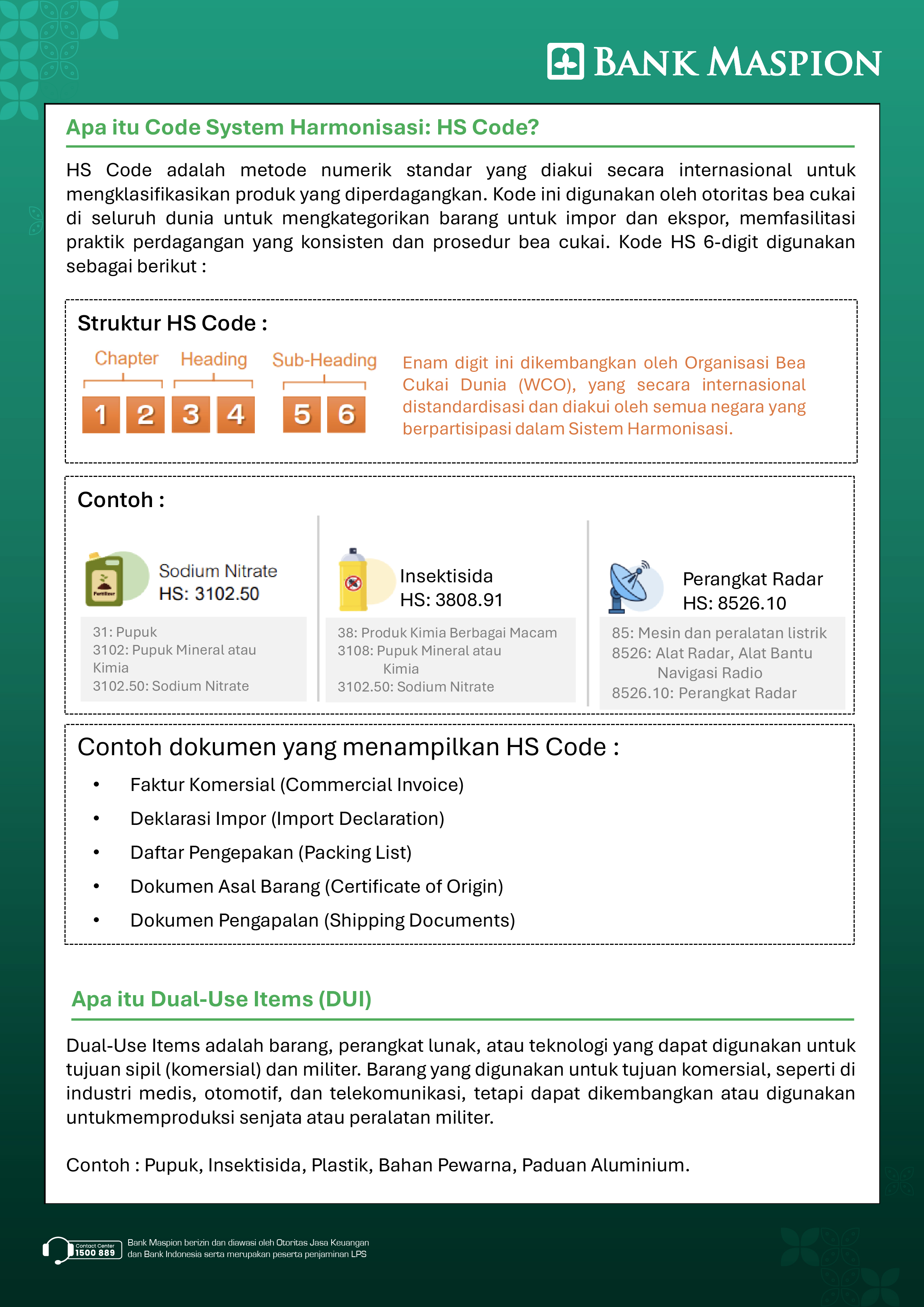 Pengaplikasian Kode Harmonisasi (HS Code) dan Pengertian Dual Use Items dalam transaksi perdagangan international